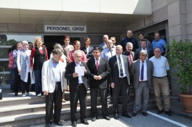 Sakarya Büro Şube Başkanı Cemal Akyol SGK binası önünde bir