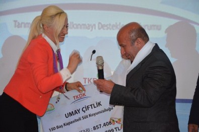 Gıda Tarım ve Hayvancılık Bakanı Yardımcısı Kutbettin Arzu, Tarım ve Kırsal Kalkınmayı Destekleme Kurumu (TKDK) tarafından yatırımcılara verilen IPARD desteklerinin ödül töreninde, yatırımcılara temsili çek verdi.