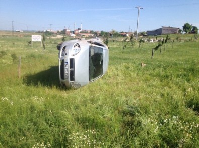 Boş arazinin içerisine yuvarlanan araçta bulunan Ercan Ceylan ve Aziz Çelik yaralandı.