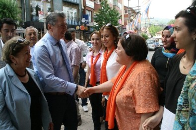 Devrek ziyaretine eşi Saime Toptan da eşlik etti. Seçimlerin önemine değinen