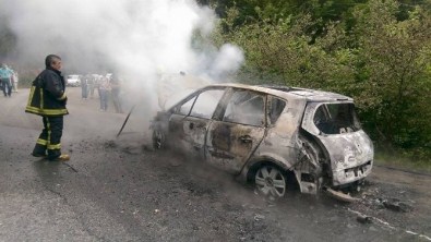 Bursa’da Uludağ’a çıkarken alev alan araç kullanılamaz hale gelirken, kazada kimsenin burnunu bile kanaması sevindirdi.