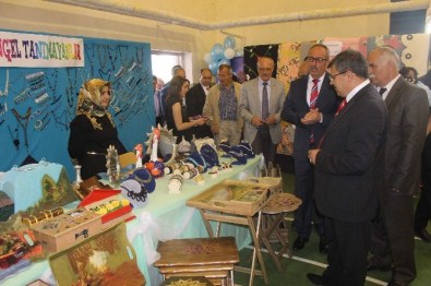 İlçe protokolü ve katılımcılar daha sonra sergiyi gezerek, ilgililerden bilgiler aldı. Sergide, katılımcıların en çok ilgisini engel tanımayanlar bölümündeki engelli öğrencilerin hazırladığı eserler gördü.