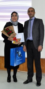 Yılın ebesi seçilen Harakani Devlet Hastanesi ebesi Güner Çevik'e Rektör Yardımcısı Prof. Dr. Mehmet Çitil tarafından çiçek ve hediye takdim edildi.