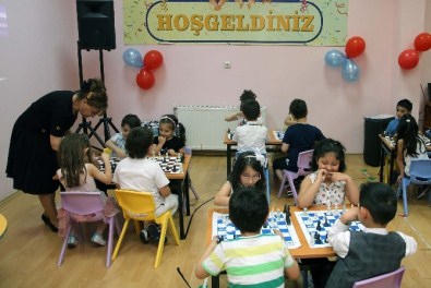 Heyecanla satranç oynayan minikler, turnuvada bulunan ailelerinin de tezahüratlarıyla daha da güzel bir yarış sergileyerek, bir yıl boyunca öğrendikleri satranç oyununu dikkatle oynadılar.