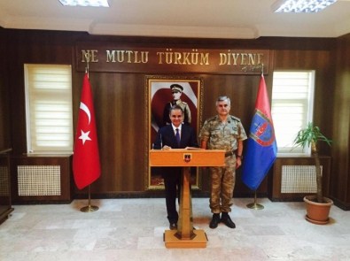 Kilis Valisi Süleyman Tapsız, tayini Çanakkale’ye çıkan İl Jandarma Komutanı Jandarma Albay Necmi İnce’yi ziyaret ederek hayırlı olsun temennisinde bulundu.
