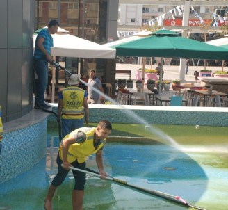 Aydın’ın Efeler ilçesinin kent merkezinde bulunan ve geçtiğimiz yıl açılan süs ve gösteri havuzu yosun tutması nedeniyle bakıma alındı. Periyodik olarak ayda en az bir kez bakımı yapılan havuzun havaların ısınması ve son zamanlarda