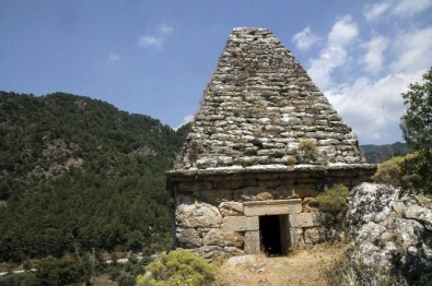 Turgut köyünde yaklaşık 50 metre yükseklikteki kayaların üzerinde bulunan mezar, dışarıdan bakıldığında piramidi andırıyor. Yüksekliği 6 metre, içi de 3 metrekare olan piramit mezarın tavanı da kubbe şekilde. Kayalıklardan ovaya doğru taş merdivenlerin bulunduğu mezar, kaynaklara göre M.Ö. 2. yüzyılda, savaşçı Diagoras ve karısı Aristomakha için yapılmış.