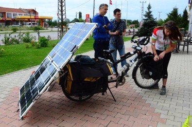 Bisikletliler Derneği Kırklareli Temsilcisi Metin Erman da, Fransız bisikletçiyi Kırklareli'nde misafir etmekten mutluluk duyduklarını belirterek, Pauline La Marnierre'ye çeşitli hediyeler verdi.