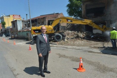 Dr. Sadık Ahmet Caddesi üzerinde bulunan ve 500 metrekarelik alanı kapsayan binalar, Büyükşehir Belediye Başkanı Recep Altepe’nin de katılımıyla ortadan kaldırıldı.