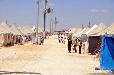 Şanlıurfa’nın Akçakale ilçesi Süleyman Şah konaklama tesislerinde barınan Suriyeli mülteciler, Ramazan ve yaz ayının kırk dereceyi bulan sıcaklardan korunmak için özel yöntemlere yaptıkları sulu klima ile serinliyor.