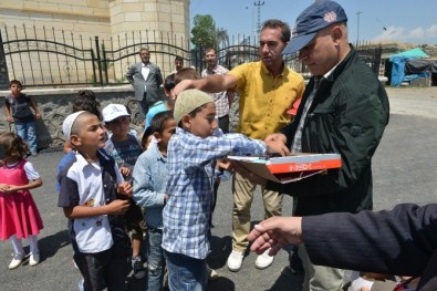 Ali Korkut, çocukları sevindirmekten geri durmuyor.