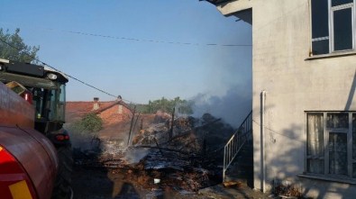 Balıkesir’in Dursunbey İlçesine bağlı Mıcırlar Mahallesinde samanlıkta çıkan yangın, rüzgarın etkisi ile evlere de sıçradı.