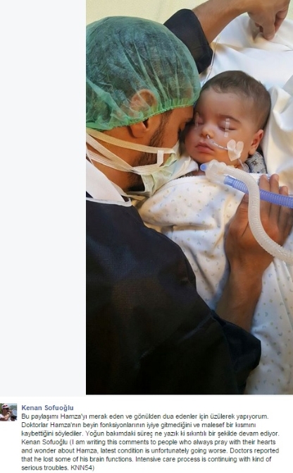 Kenan Sofuoğlu açıklamasında, ''Bu paylaşımı Hamza'yı merak eden ve gönülden dua edenler için üzülerek yapıyorum. Doktorlar Hamza'nın beyin fonksiyonlarının iyiye gitmediğini ve malesef bir kısmını kaybettiğini söylediler. Yoğun bakımdaki süreç ne yazık ki sıkıntılı bir şekilde devam ediyor'' ifadelerini kullandı.