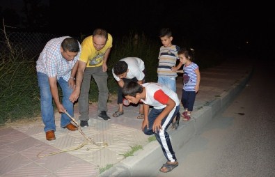 Manisa’nın Şehzadeler ilçesine bağlı Ahmet Bedevi Mahallesinde görünen yaklaşık 2 metre uzunluğundaki yılan korkuya neden oldu. Hareket halindeki yılanı gören vatandaşlar paniğe kapılırken, saklanmaya çalışan yılanı bazı vatandaşlar öldürerek yolun kenarına attı.