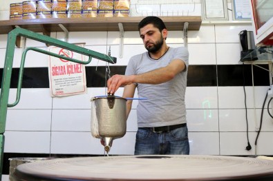 Hazırlanan künefenin içerisine kaymak, ceviz veya toz şeker alındığını ifade eden Künefeci, yağda kızaran bu lezzetin, ramazan sofralarının önemli tatlılarından olduğunu kaydetti.