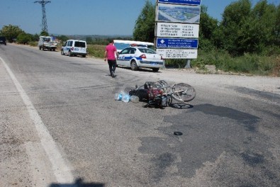 Edinilen bilgiye göre Ezine yönünden ilçe merkezine gelmekte olan Selahattin Sürücü (70) yönetimindeki plakasız motosiklet ile karşı yönden gelen Feridun Keçili yönetimindeki 17 HR 186 plakalı minibüs ilçe girişi Meyve Sebze Hali önünde çarpıştı. Kazada motosiklet sürücüsü yaralandı. Polis kaza ile ilgili inceleme başlattı.