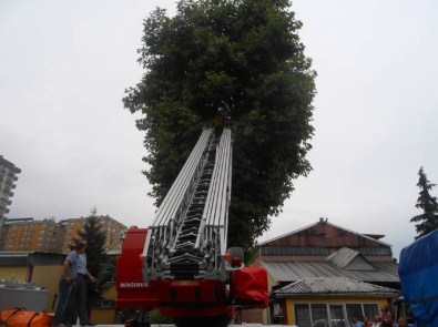 Çıktığı ağaçtan inemeyen işçi ağaçta mahsur kalırken arkadaşlarının yardım istemesi üzerine olay yerine ulaşan Rize Belediyesi İtfaiyesi ekipleri ağaçta kalan işçiye ulaştı.