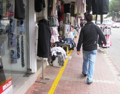 Ödemiş Belediyesi’nden konuyla ilgili yapılan açıklamada, “Vatandaşların cadde ve sokaklardaki kaldırımları daha rahat kullanabilmesi için esnafın dükkan önündeki kaldırımı kullanmasında standart getirilmesi amacıyla geçtiğimiz yıllarda uygulanan sarı çizgi uygulaması yeniden uygulanacak. Belediye yetkileri tarafından yapılacak çalışma sonucunda sarı çizgi uygulamasına göre kaldırım taşından dükkan sınırına kadar olan mesafenin en az 100 cm’si hariç olmak üzere, en çok 60 cm’ye kadar işgal edilebilecektir." denildi.