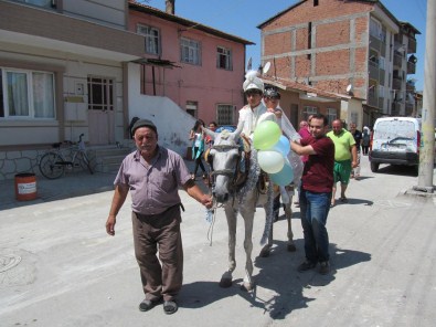 Ölen oğullarından emanet kalan torunları 10 yaşındaki Arda Çanakçı için sünnet düğünü yapan dede ve nine, Arda'yı ata bindirerek sokaklarda gezdirdi.