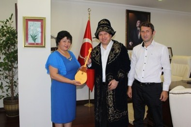 Düzce Valisi Ali Fidan, Yazar Metin Aydemir ve Jamila Bigojayeva’yı ağırladı. Gelen misafirler Vali Fidan’a Kazak Milli kıyafeti armağan etti.