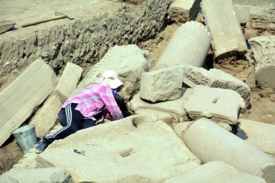 "Kazılarda, kentte yaşanan depremden sonra yıkılan sütunlarla dönemin tuvaletlerini gün yüzüne çıkardık. Şu an bu alanda kazı ve sütunları ayağa kaldırma çalışması yürütüyoruz. Gün yüzüne çıkarılan tuvaletlerin ortası sütunlarla çevrili. Etrafında oturma sıraları bulunuyor. Buranın mimari bloklarını antik dönemde depremde yıkıldığı şekliyle bulduk. Kazı ve konservasyon çalışmaları bittiğinde bu sütunları olduğu şekli ile tamamen ayağa kaldırabileceğiz."