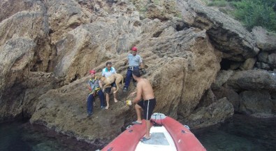 Kısa sürede olay yerine gelen deniz polisi, köpeğin kayalık alanda bulunduğu yeri tespit etti. Yaklaşık 10 metre kayalıklara tırmanan polisler köpeğe ulaştı. Polis,kucağına aldığı köpeği bota taşıdı. Polisler tarafından bota alınan köpek, ardından Kaleiçi Yat Limanı polis merkezine getirildi.