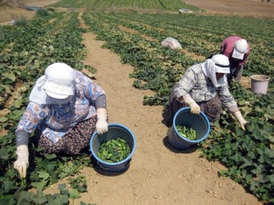 İzmir’in Ödemiş ilçesinde salatalıkta ikinci ürünlerin hasadı başlarken, tarlalarda çalışan işçiler 40 derece sıcak altında ekmek parası kazanmaya çalışıyor.