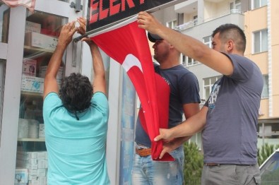 İsmail Şahin, terörü lanetlemek için dükkanının önüne Türk bayrağı astı. "Kim ne hainliği yaparsa yapsın biz bu Türk bayrağını dalgalandıracağız" diyen Şahin, "Üzüldüğümüz tek şey var boştan yere Türk kanları akıyor. Biz de esnaf olarak terörü lanetliyoruz. Fransa’da 12 vatandaş terör saldırısına kurban gidiyor, bütün liderler terörü lanetliyor ama biz 58