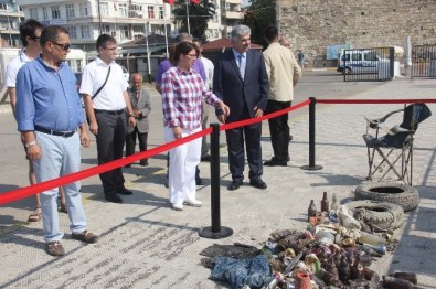 “Bu tür kalıntılar dipte birikmişti, deniz polisimize bağlı balık adamlar böyle bir proje geliştirildi” diyen Vali Çetinkaya şöyle konuştu: “Proje Emniyet Müdürlüğümüzün ama ortakları da var. Sinop Üniversitesi, Çevre ve Şehircilik Müdürlüğü, Kültür ve Turizm Müdürlüğü ile Belediyemiz de var. El birliği içerisinde üç beş günde olsa bir temizlik yapıldı. Burada ki amaç, denizdeki bütün bu kalıntıları temizlemek değil, asıl amaç sergilemekteki. Denize bunlar atılabiliyor, atan kişi bile attığı çöpün denizden çıkartıldığında ‘ben ne yapmışım’ diyebiliyor, asıl amaç bu. Gerçekten aşağıda çok fazla miktarda kalıntı var. Hepsini temizlemek değil ama insanlarımızın kendine gelmesini sağlamak. Yani bunların denize nasıl atıldığı konusunda kendisini sorgulamasını sağlamak.”