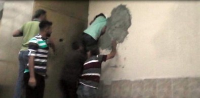 Ancak içeride çok sayıda kişi olmasına rağmen kapıyı kimse açmadı. Polis kapıya vurarak "Aç. Polis!" diye bağırmasına rağmen kapı yine açılmayınca bu kez polis balyozla kapının yanında duvarı delmek için çalışma başlattı.