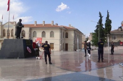 Cumhuriyet Anıtı’nda 40 dakika boyunca ceza olarak algılanacak şekilde çelenk sunumu tekrarı yaptırdı. Polislerin 40 dakikalık çelenk sunum cezasını çevredeki vatandaşlar da şaşkınlık içinde izledi.