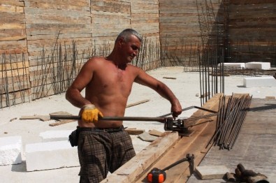 Tekirdağ’da inşaatlarda çalışan işçiler, kızgın güneşin altında demir bağlayarak ekmek parası kazanıyor.