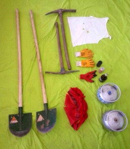 Binada yapılan aramada, el yapımı 2 bomba, 1 molotofkokteyli, bomba yapımında kullanıldığı değerlendirilen 2 piknik tüpü, 2 ahşap saplı kazma, 2 ahşap saplı kürek, maske, flama ve 3 bez eldiven ele geçirildi.