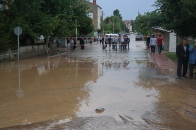 Kütahya'nın Tavşanlı ilçesinde sağanak nedeniyle birçok evi su bastı, elektrik telleri koptu, yollarda çökmeler meydana geldi.