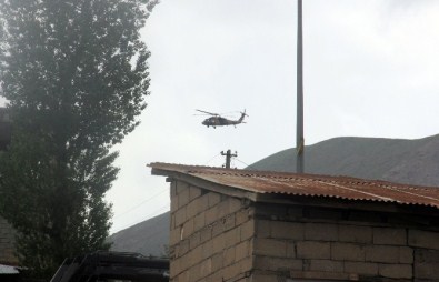 Komando Tugay Komutanlığından kalkan helikopterler, kara yolu üzerinde devriye görevini sürdürüyor. İlçe yolunun trafiğe kapalı olduğu Çukurca’da vatandaşlar, ilçenin onlarca köye ulaşımına alternatif yol olan