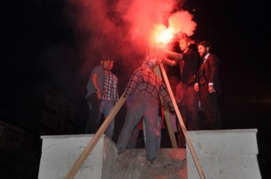 terör örgütü lideri Abdullah Öcalan’ın maketi asarak tekbirlerle yaktı. Saygı duruşunda bulunulması ve