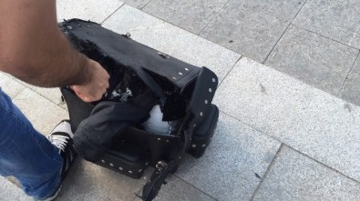 fünye ile patlatılan şüpheli çantanın içinden motosiklet kaskı ve motosiklet eldiveni çıktı. Çantanın patlatılmasının ardından trafik normale dönerken