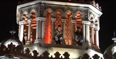 Durumu gören vatandaşlar polis ve itfaiye ekiplerine haber etti. Olay yerine gelen itfaiye ekipleri şişme yatak ve yangın söndürücülerle önlem alırken, polis şahısları ikna için çaba sarf etti. Kocaoğlu’ndan yardım isteyen Kondurlu ve Öztürker, polisin uğraşları sonucu ikna olarak saat kulesinden indirildi.