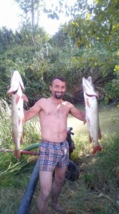 Tekirdağ’ın Malkara ilçesine bağlı Evrenbey Mahallesi’nde tarla sulaması yapan bir vatandaş, dereden 1 metre boyunda 2 turna balığı yakaladı.