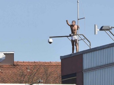 18 metre yükseklikteki binanın çatısında yaklaşık bir saat kalan genç, aşağıda toplanıp fotoğrafını çekenlere “Facebook'a koyun' diye bağırdı. 15 polis ve gardiyanın çabaları sonunda ikna olan genç teslim oldu.