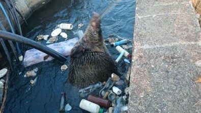 Zabıta da orman ekiplerinden yardım istedi. Düştüğü kanalda çırpınmasına rağmen çıkamayan yaban domuzunu kurtarmak için önce halat atıldı. Ancak domuzu yukarı çekmek mümkün olmadı. Bunun üzerine devreye
