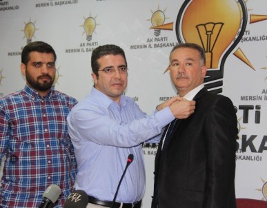 Konuşmaların ardından AK Parti İçel İl Başkanı İsmail Taşpınar, Taner Boz’a parti rozetini taktı.