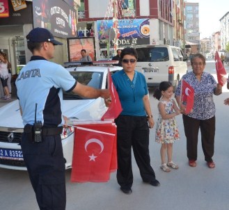 Ereğli’nin farklı noktalarında dağıtılan Türk Bayrağını alan esnaf ve vatandaşlar teröre lanet okudular.