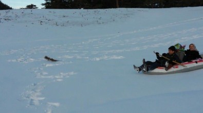 Deniz botu içerisine vatandaşlar yaylada kayak yapmanın keyfini doyasıya yaşadı.