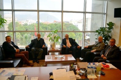 Aydın Sanayi Odası (AYSO) Yönetim Kurulu Başkanı Mehmet Yunus Şahin, Başkan Yardımcısı Salih Fahlioğulları, Yönetim Kurulu Üyeleri Sinan Yılmaz ve Mehmet Küçük ile AYSO Genel Sekreteri Kerem Öden Söke Belediye Başkanı Süleyman Toyran’ı ziyaret etti.