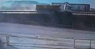 Tuzla TEM Otoyolu’nda lastiği patladığı iddia edilen hafriyat kamyonu, şarampole yuvarlandı. Kaza anı, güvenlik kameraları tarafından saniye saniye görüntülendi.