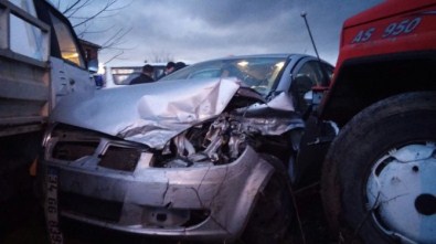 Mustafa Kılıç (54) idaresindeki 34 GG 8399 plakalı otomobil ile Baki Çiv (60) idaresindeki 67 LD 492 plakalı otomobil Ören Kavşağı’nda çarpıştı. Kazayı fark edemeyen 54 HE 165 plakalı kamyon ile 67 TE 242 plakalı açık kasa kamyonet de 34 GG 8399 plakalı otomobile çarptı. Kazada yaralanan sürücülerin yardımına ilk olarak çevredeki vatandaşlar koştu. Otomobilden çıkarılan iki sürücüye olay yerine çağırılan 112 sağlık görevlileri ilk müdahaleyi yaptıktan sonra ambulansla hastaneye kaldırıldı. Yaralı sürücülerin hayati tehlikeleri bulunmazken, hastanedeki tedavilerine devam edildiği öğrenildi.