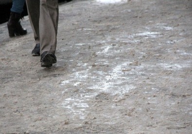 Erzurumlular Buzlu Kaldırımda Zor Anlar Yaşadı