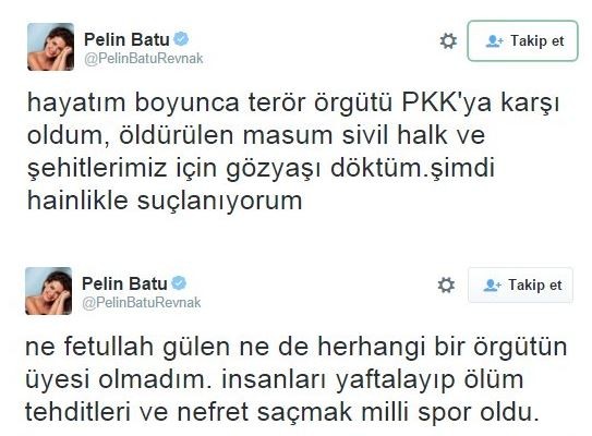Pelin Batu, PKK'ya karşı olduğunu ve Fethullah Gülen'in örgütüne üye olmadığını aktardı.