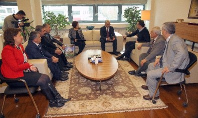 Çankaya Belediyesi’nin “Kardeş Kent” olduğu Niğde Kemerhisar Belediyesi Başkanı Beytullah Kirazcı ve Belediye Meclis üyeleri, Çankaya Belediye Başkanı Alper Taşdelen’i makamında ziyaret etti.